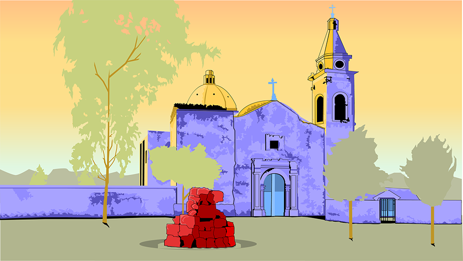 This room was created as a way to express my hopelessness of the events that took place in Chupicuaro. The illustrations are scattered throughout the ruins, so anyone can investigate and learn about the story.
